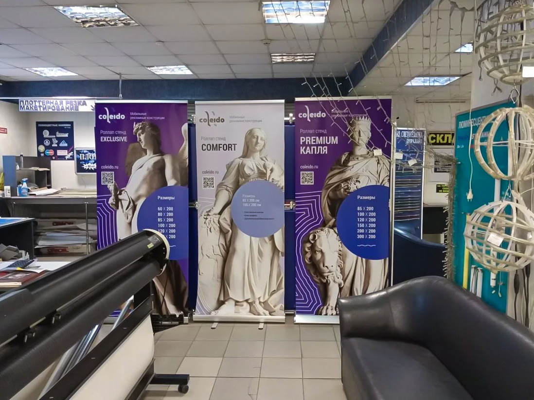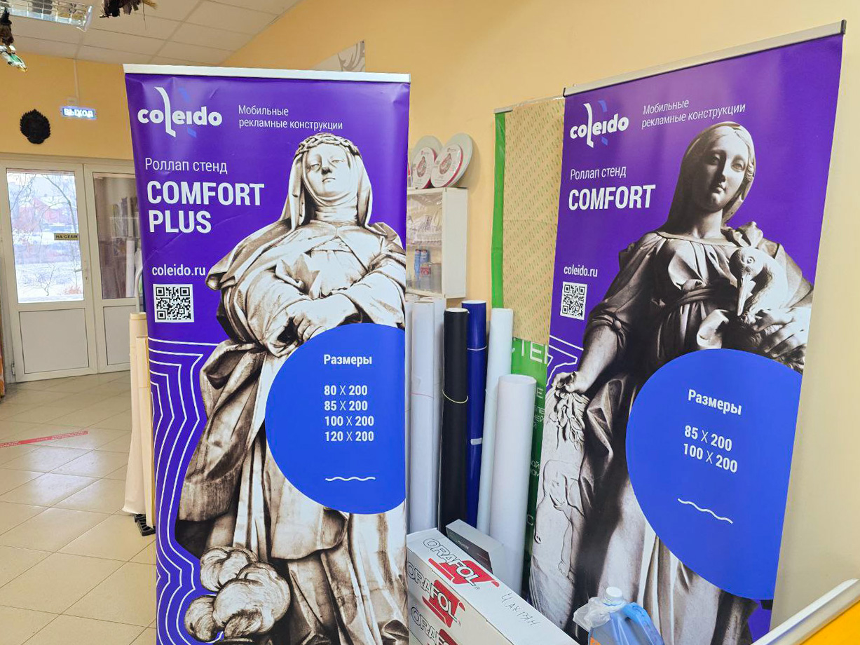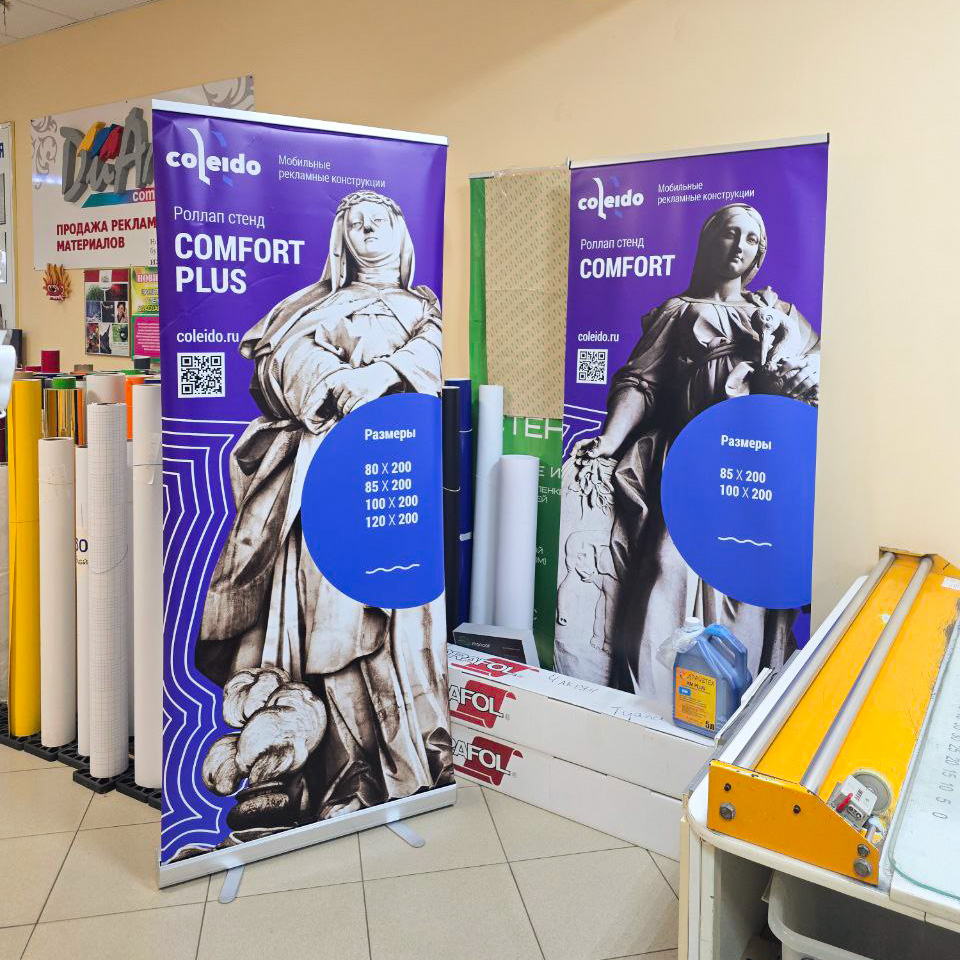 Мы прямой поставщик не только мобильных стендов, но и печатных материалов, используемых в Roll up и Pop up стендах